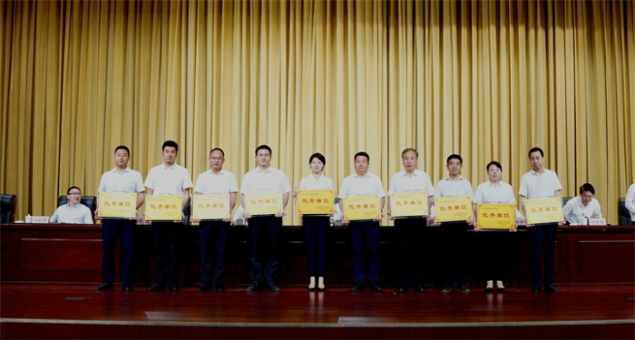會上,區委常委、常務副區長屈亞奇宣讀了區委、區政府有關表彰通報,區委常委、組織部長劉博彥對目標責任考核情況作了說明。大會對全區2022年度目標責任考核優秀單位、固定資產投資及項目謀劃工作先進單位代表、金融機構支持地方經濟發展特別貢獻單位、地方經濟發展貢獻先進單位等各類先進進行了表彰獎勵。