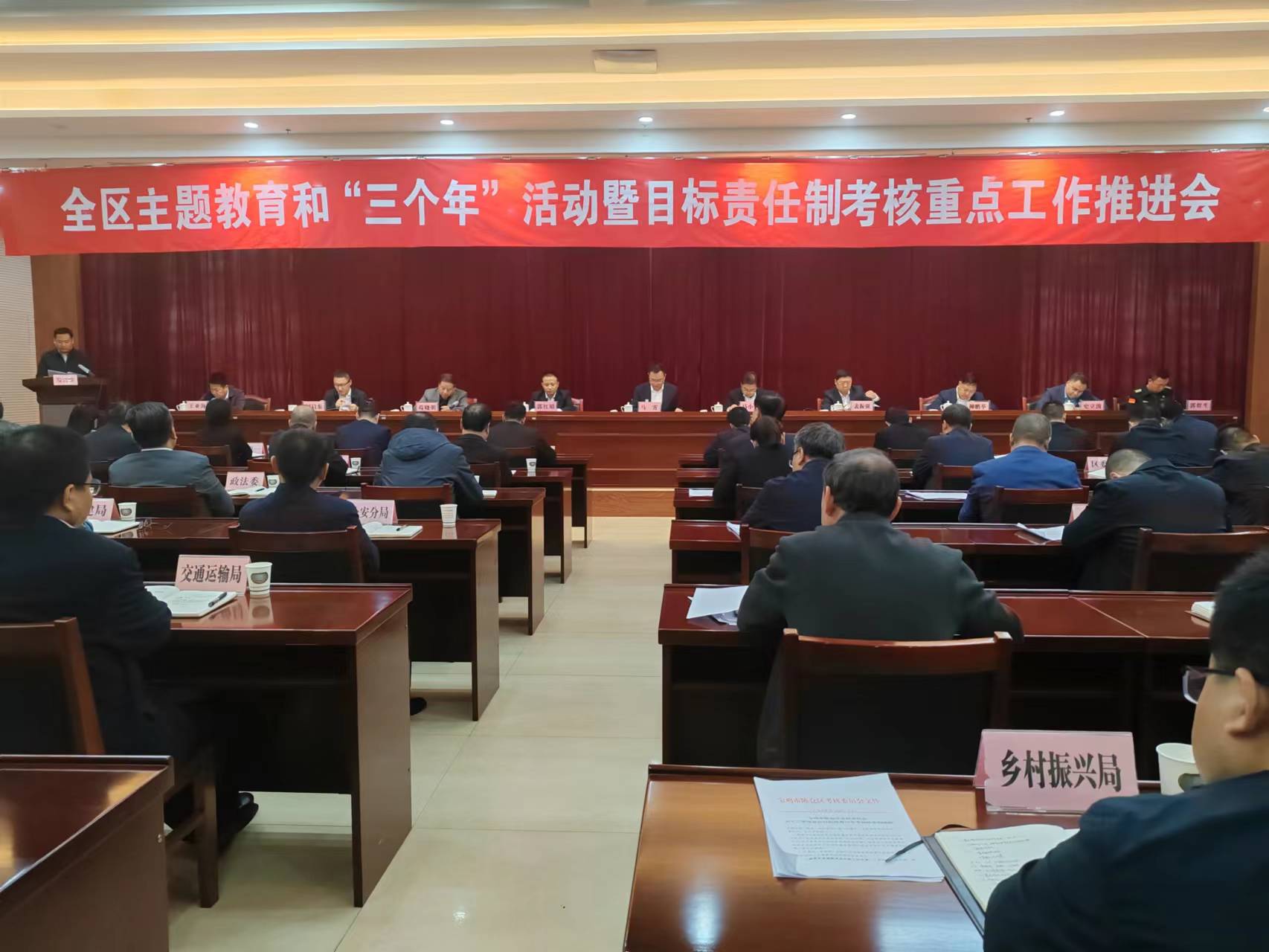 10月31日,區委書記馬霄主持召開全區主題教育和“三個年”活動暨目標責任制考核重點工作推進會。會議深入學習貫徹習近平總書記重要講話重要指示精神,研究部署下一步主題教育、“三個年”活動、目標責任制考核等重點工作。區委副書記柳鵬舉組織學習了中央和省市委有關會議精神,通報了全區有關工作情況。區委副書記、區長馬小鋒安排了近期重點工作。省委巡視組成員郭紅昭應邀參加會議。區人大常委會主任裴振強、區政協主席茍曉明等所有在家區級領導及各鎮(街)黨政主要負責同志,區級各部門、各人民團體主要負責同志參加會議。