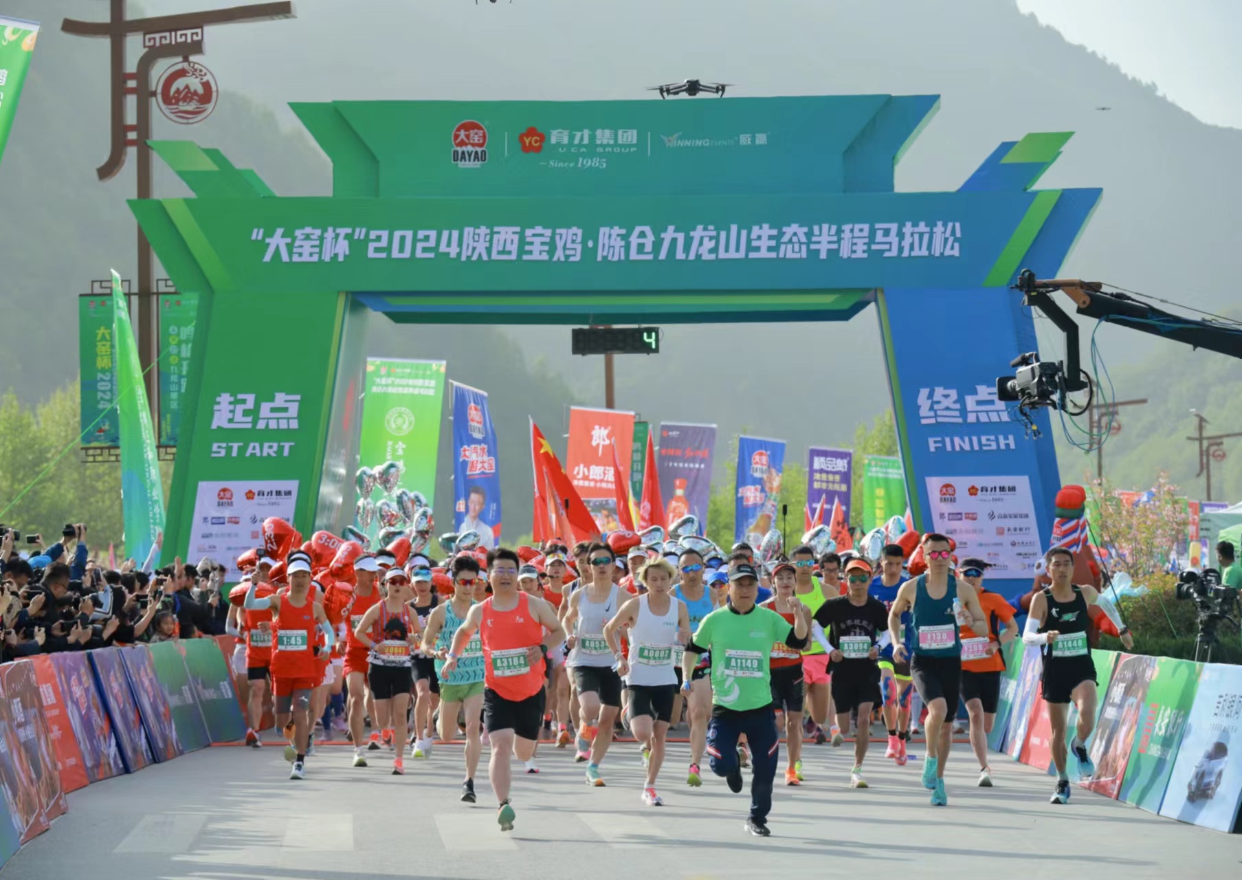 4月21日,“大窯杯”2024陜西寶雞·陳倉九龍山生態半程馬拉松賽在九龍山景區鳴槍開賽。