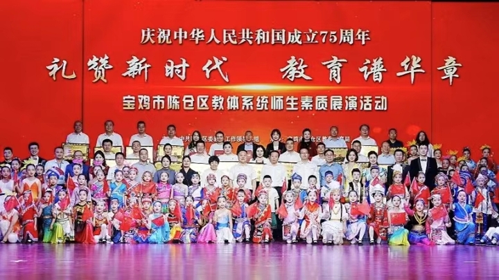 9月29日,由中共寶雞市陳倉區委教育工作領導小組主辦,陳倉區教體局承辦的慶祝中華人民共和國成立75周年“禮贊新時代教育譜華章”陳倉區教體系統師生素質展演活動在區政府劇院舉行。寶雞市教育局黨組成員李天讓,區領導裴振強、茍曉明、柳鵬舉、劉博彥、徐宏剛、閆海艷、齊曉輝、王曉妮參加活動。